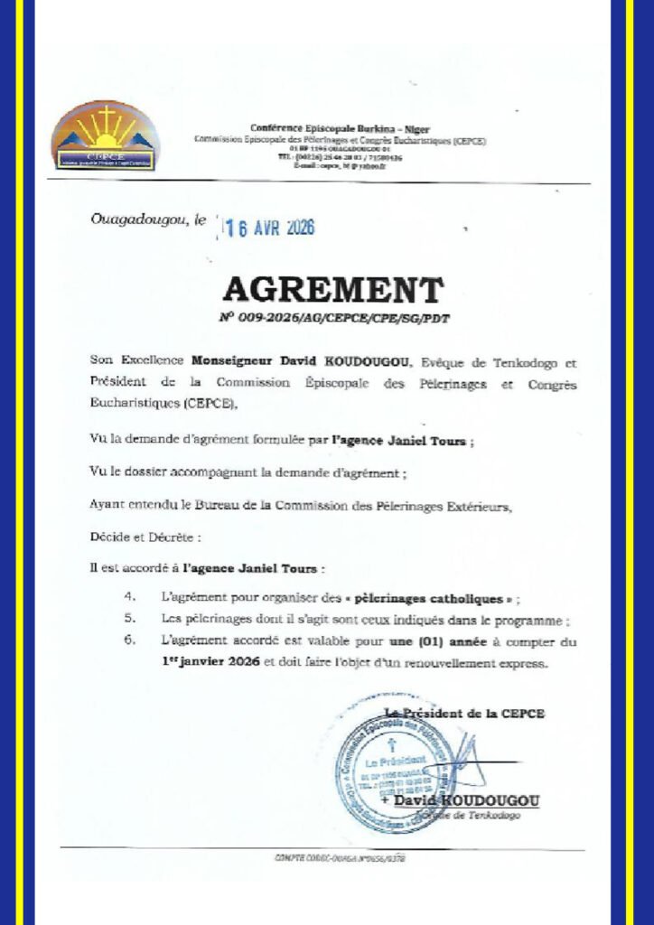 Agrément N°012-2025/AG/CEPCE/CPE/SG/PDT pour l’organisation des pèlerinages
